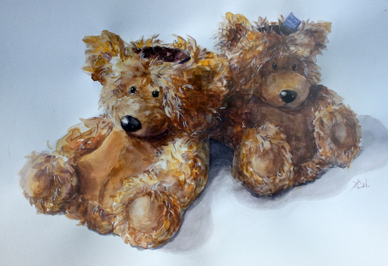 Вдохновленная Денниным творчеством, уложив его спать, вытерев и убрав следы нашего совместного креатива, я и сама нарисовала очередные тапки. Тоже на медвежью тему. :)